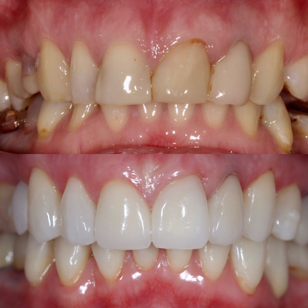 Это виниры на рефракторе . 12 зуб коронка на оксиде циркония.