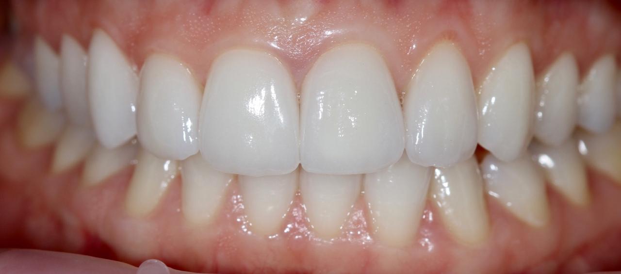 Установлены керамические виниры на верхнюю челюсть по эстетическим требованиям.