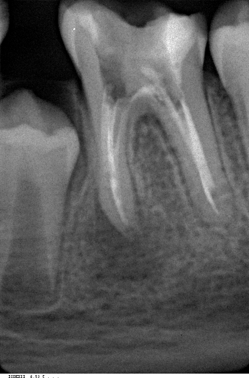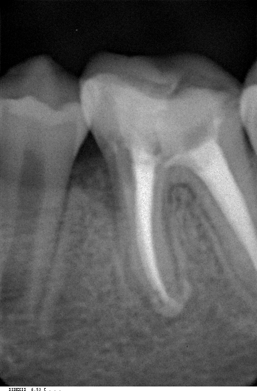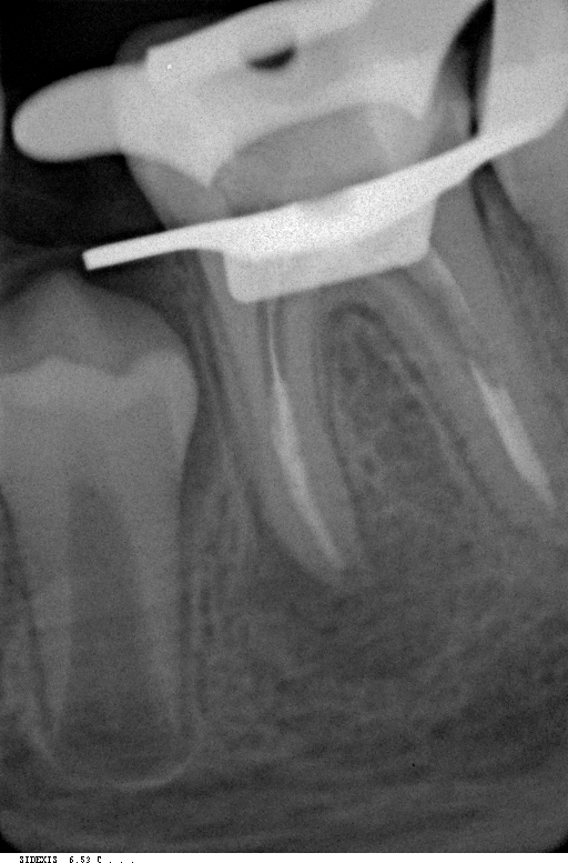 * Эндодонтическое лечение в обязательном порядке определяется электронным устройством под названием apex locator и проверяется с помощью нескольких рентгенограмм, сделанных с иглой в каждом корневом канале.