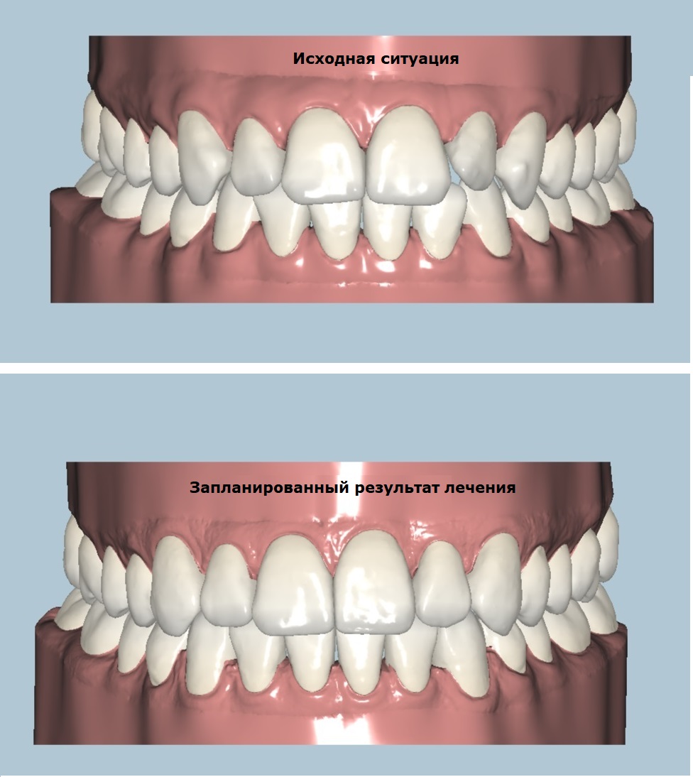Это пример ортодонтического лечения, проведенного в нашей клинике.